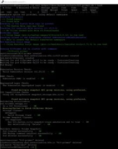Finalmente, ejecutamos el siguiente comando en el cual se verificará que el cluster de Kubernetes cumple con todos los pre-requisitos para instalar Kasten, incluyendo la existencia de un CSI Driver y su correcta configuración: